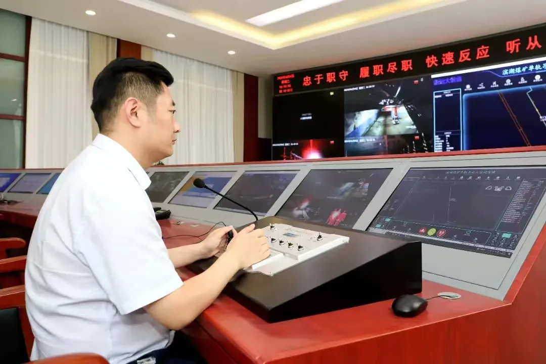在濱湖煤礦的調(diào)度指揮中心,工作人員輕點(diǎn)鼠標(biāo),設(shè)置好起點(diǎn)與終點(diǎn),百米井下,滿載物料的單軌吊機(jī)車如同智能使者,沿著預(yù)設(shè)路線自動(dòng)行駛,沿途語音播報(bào)、司控道岔、風(fēng)門自動(dòng)開關(guān),一切盡在掌握之中!包c(diǎn)對(duì)點(diǎn)無人駕駛”讓復(fù)雜的煤礦運(yùn)輸變得簡(jiǎn)單而高效。